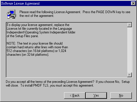 Figure 4-4 PMDF-TLS installation session: Software License Agreement