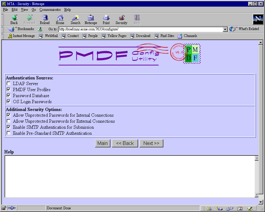 messages to PMDF), and whether to configure to allow SMTP AUTH (SASL)