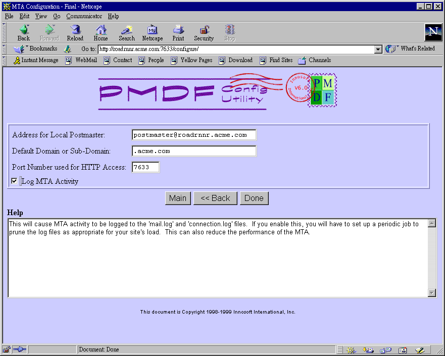 Figure 6-8 shows the final page of entering PMDF-MTA/SMTP