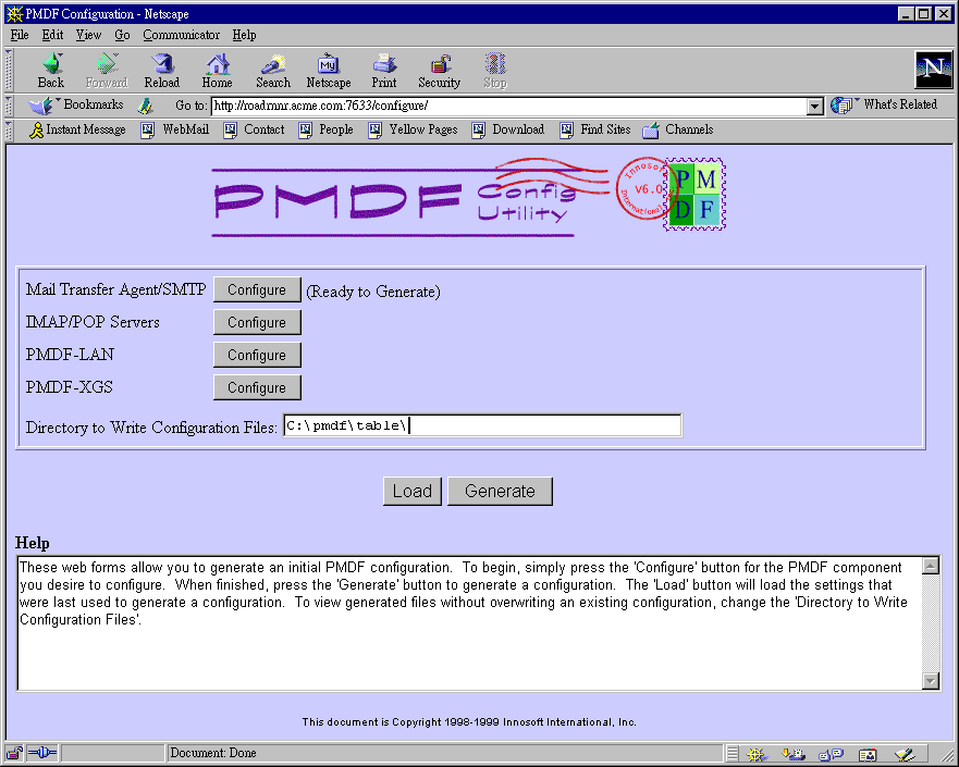 configuration information for the MTA/SMTP component. At this point you