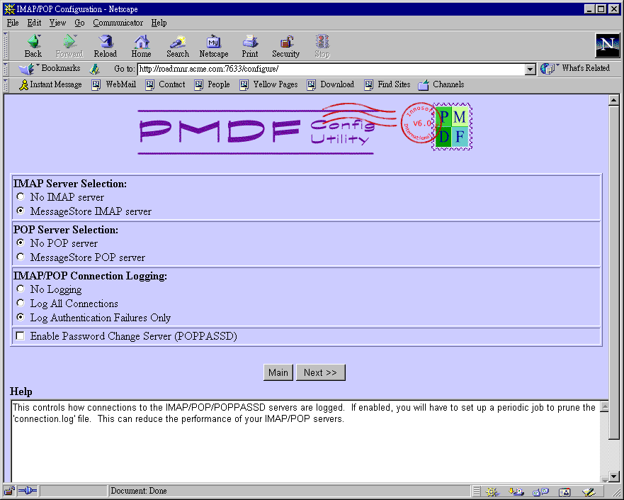 Figure 6-10 shows the first screen of the IMAP/POP Servers