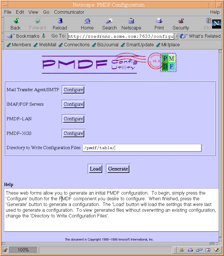 Figure 6-4 shows the PMDF web-based configuration utility main menu,