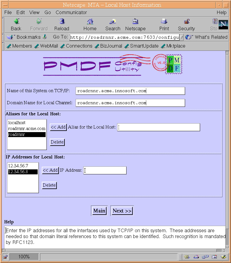 Figure 6-5 shows the first page of the PMDF-MTA/SMTP configuration
