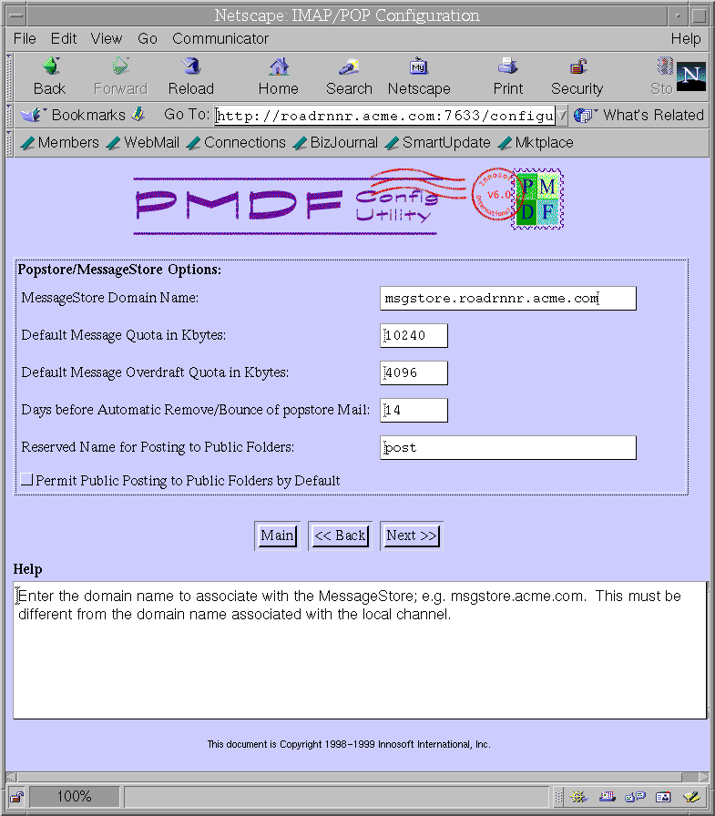 Figure 6-11 IMAP/POP configuration, popstore/MessageStore information
