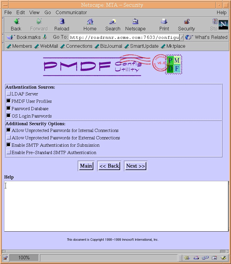 messages to PMDF), and whether to configure to allow SMTP AUTH (SASL)