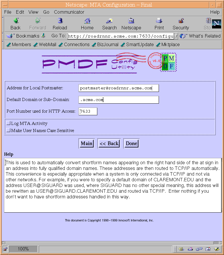 Figure 6-8 PMDF-MTA/SMTP configuration, final details