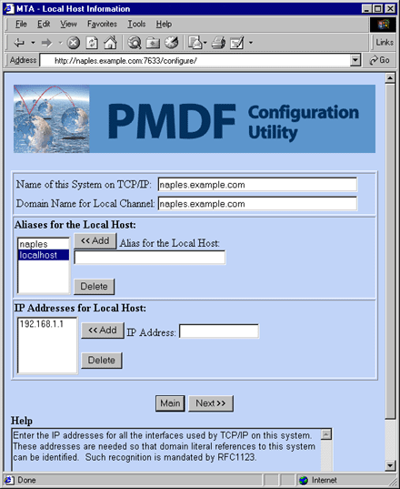 Figure 5-5 displays when PMDF is initially configured. Use this screen to enter information about the local host (the system that is running PMDF).