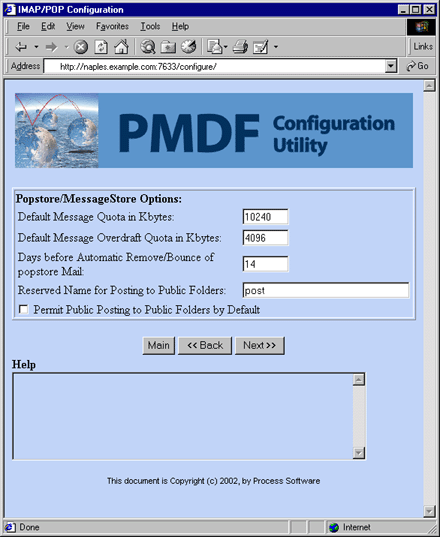 Figure 5-11 IMAP/POP Configuration, popstore/MessageStore Information