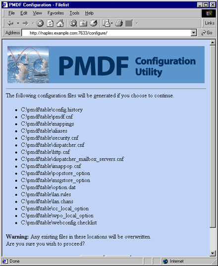 Figure 7-6 shows the point in the configuration where you can choose to proceed and write the configuration files.