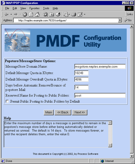 Figure 5-11 IMAP/POP Configuration, popstore/MessageStore Information