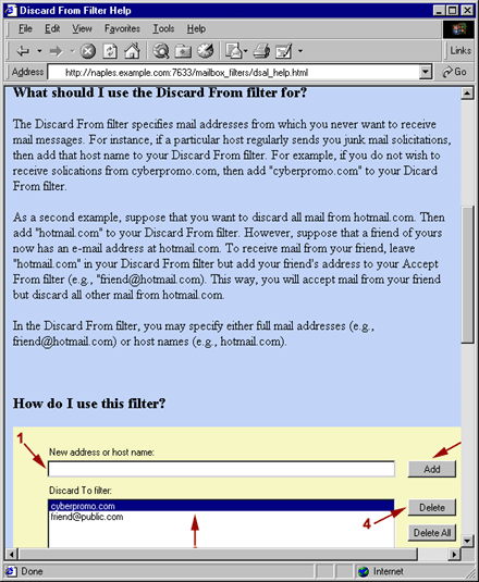 Figure 3-2 Selecting the Discard From filter from the Mailbox Filter home Page